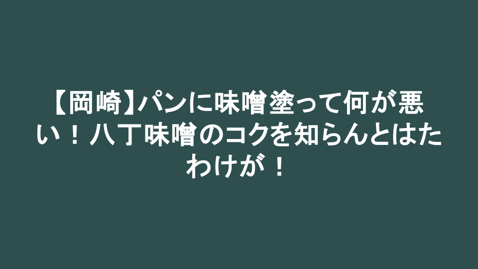 「おいタナカ!何だそのツラは!パンに味噌を塗るのが信じられんとお前、今言うたか!たわけが!お前はまだ、人生の『渋み』というものを何一つ分かっとらんのだわ。名古屋から1号線を東へぶっ飛ばして、岡崎の空気を吸ってみろ。そこにはな、徳川家康公が愛し、三河武士の血肉となった『八丁味噌』という名の魂が漂っとるんだわ。